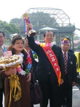 電聲廣播電台台長銘輝(本名:張永昇),榮膺98年全國好人好事代表八德獎的殊榮,週六98/12/26上午於勝利之聲廣播公司為其舉辦的歡迎會中,長期受銘輝台長資助的崑山科大一年級李姿瑩同學特別獻花給銘輝台長祝賀,場面感人。