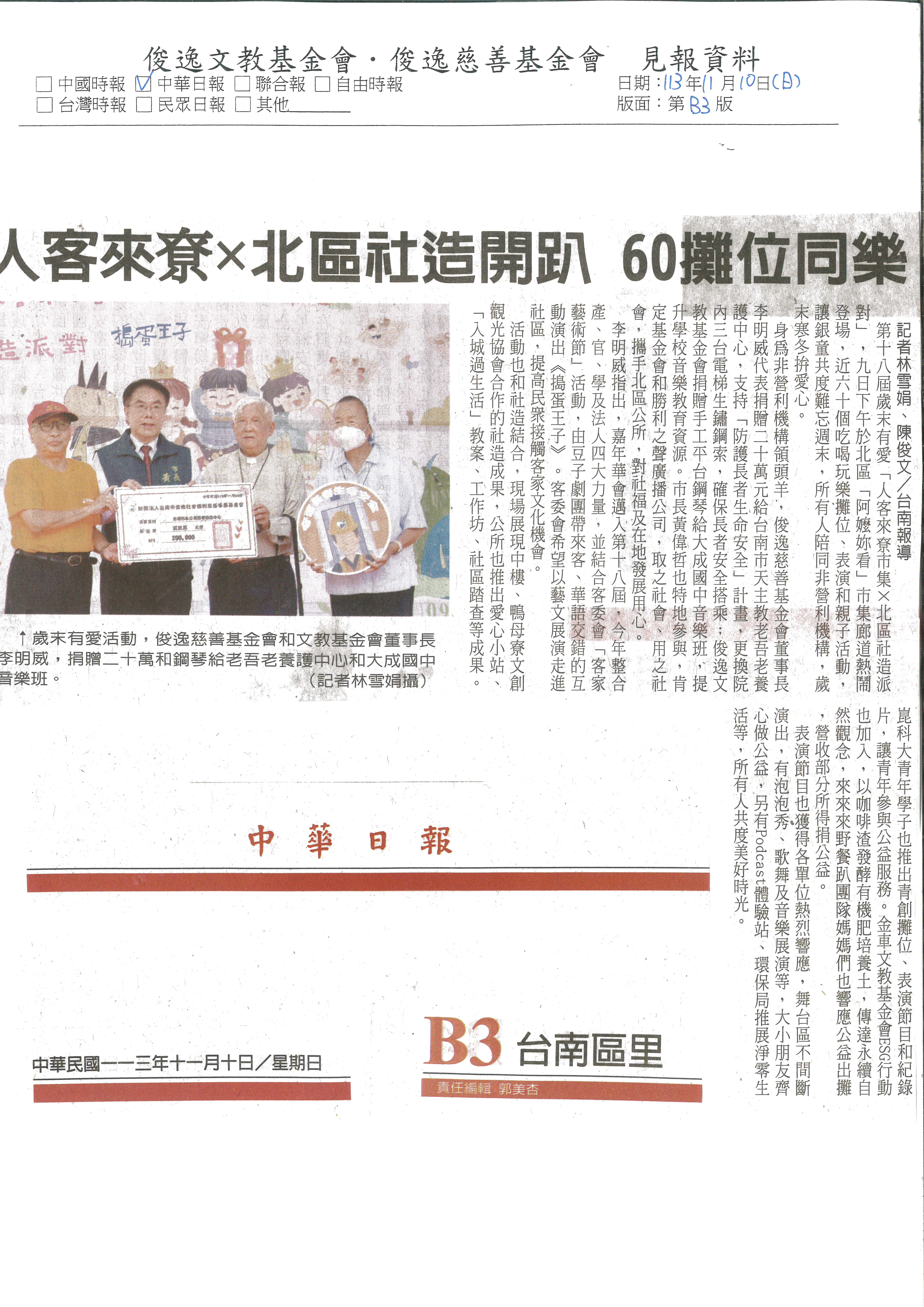 む中華日報め人客來尞X北區社造開趴 60攤位同樂(報)::俊逸文教基金會::