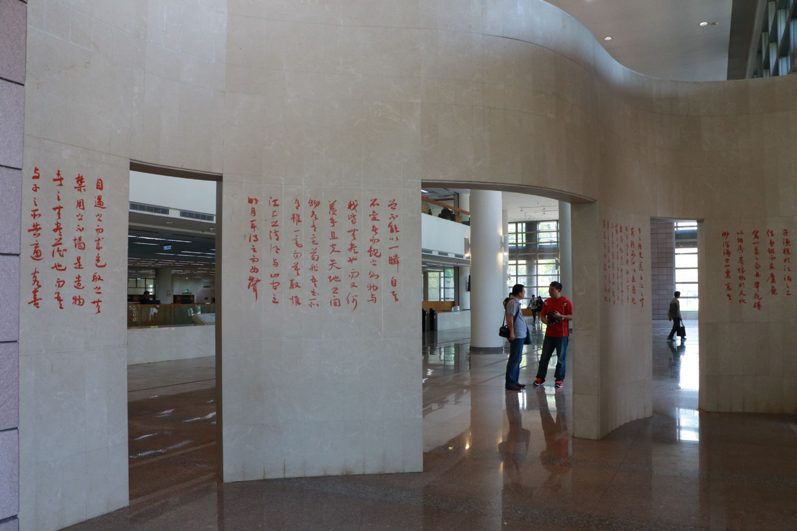 【記者林忠平台南報導】成功大學圖書館發揮巧思、創意連結,透過藝術創作讓修繕工程更圓滿!成大總圖書館修繕一樓大廳曲面屏風牆,擅長書法的成大建築系吳玉成副教授擔大任,他用純熟的草書寫下宋朝「赤壁賦」躍上曲面牆,為牆面添文采,文字、曲牆相得益彰,帶來文學視覺饗宴。