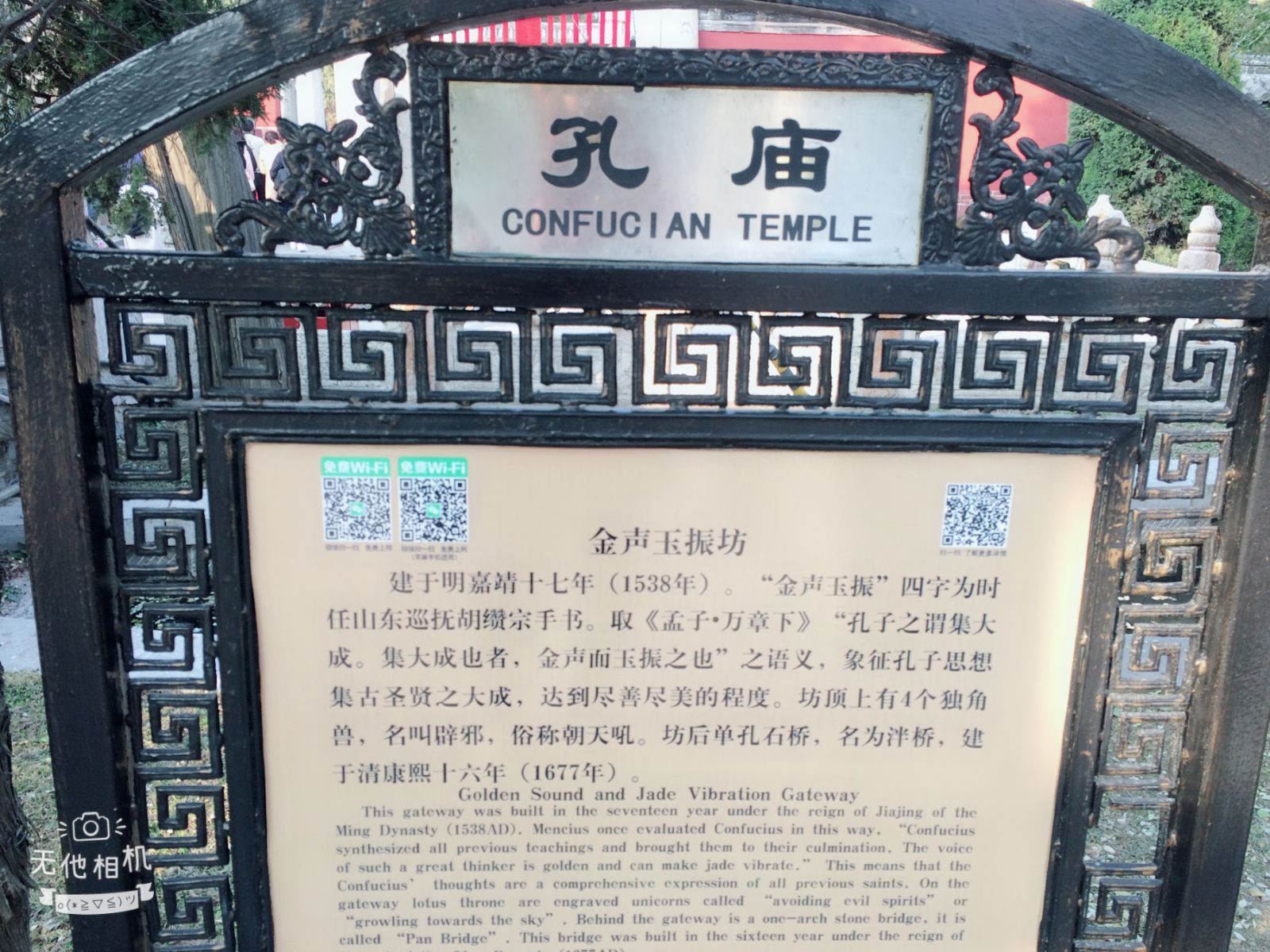 孔廟正南門城牆上寫有四個大字-「萬仞宮牆」是乾隆皇帝的御筆。