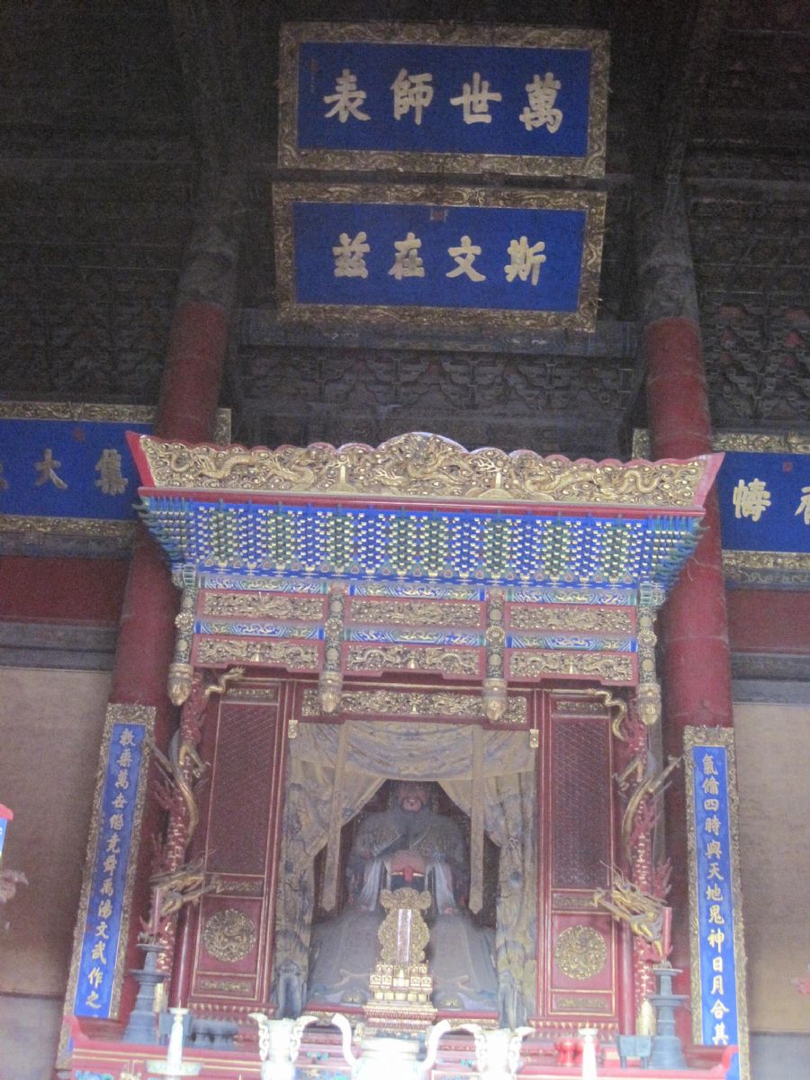 「孔廟」正殿「大成殿」,「大成」二字出自於孟子對孔子思想的讚揚,「大成」的意思是孔子的思想聚集了他的先人堯、舜、禹、湯、文武周公的思想,和儒家所創建的孝、悌、仁、愛結合在一起,達成了儒家的完美。