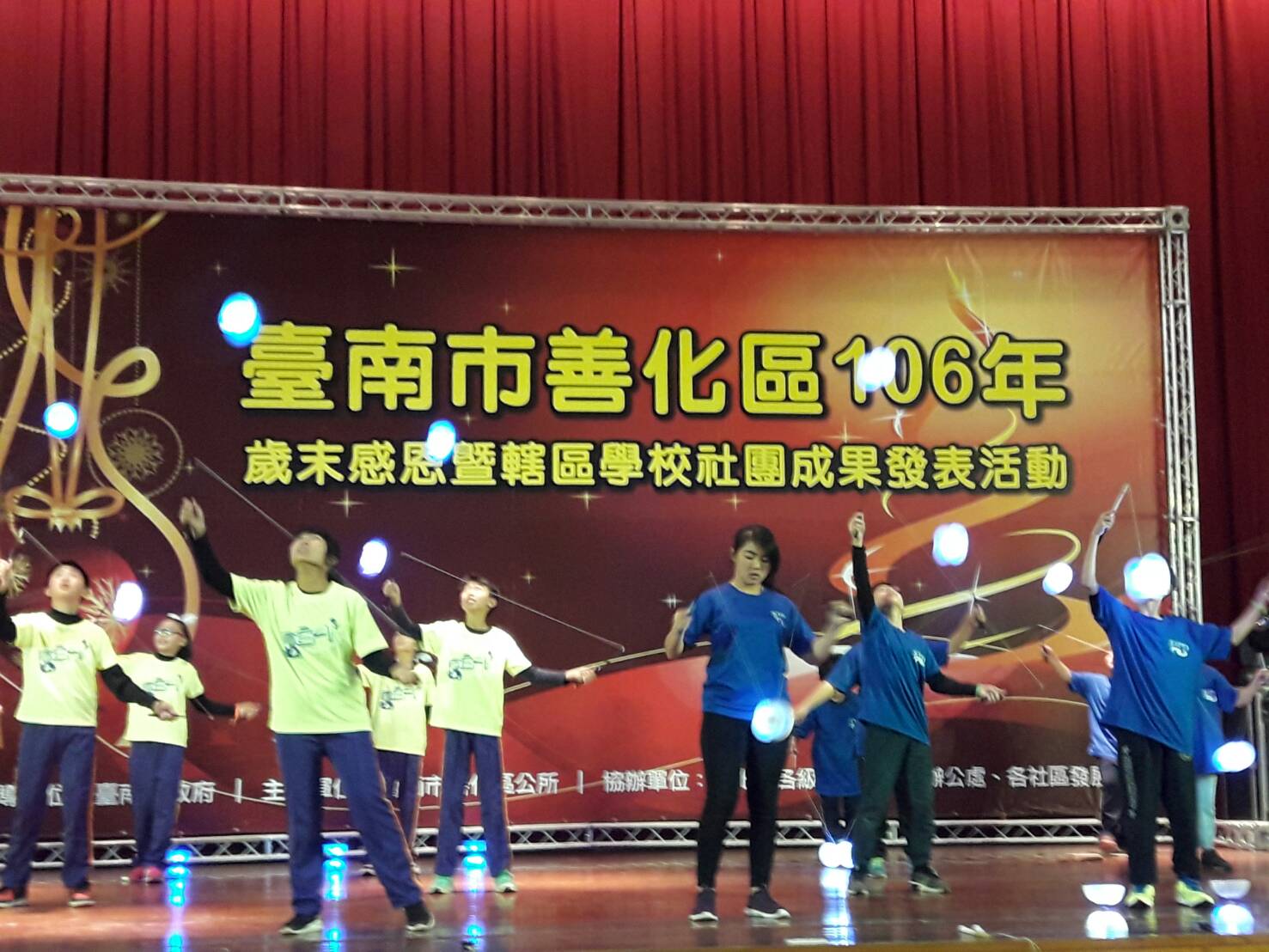為感謝志工、義工朋友們這一年來的辛苦犠牲奉獻,邀請轄內各級學校,包括國立善化高中、善化國中、7所小學等精心準備了各式各樣的表演節目共襄盛舉,包括有非洲鼓團、國樂合奏、直笛演奏、古典舞蹈、街舞及扯鈴表演等,活動內容琳琅滿目,精彩無比,除了展現學校這一年來努力的成果外,更對志工朋友們表達感恩的心。
