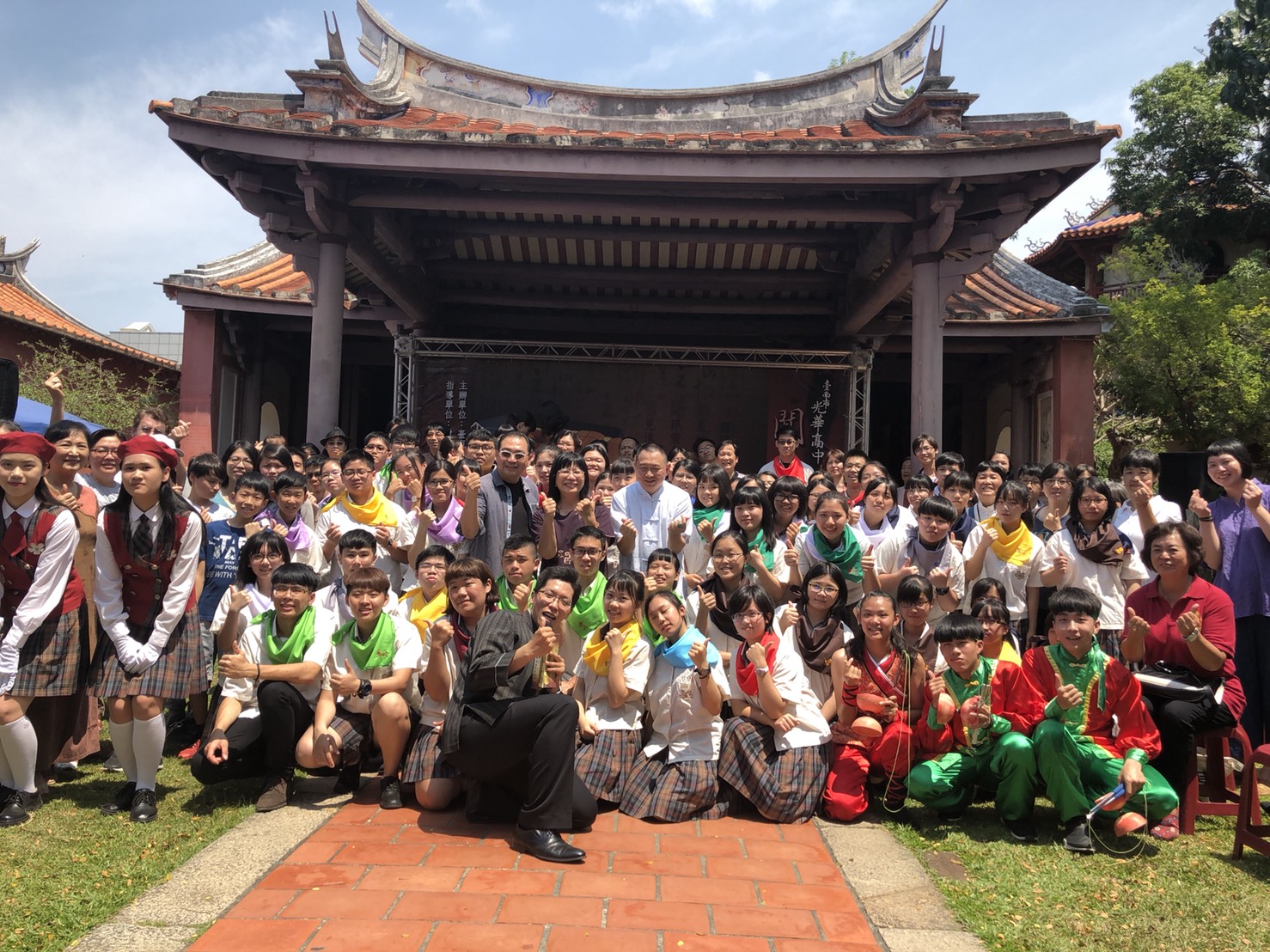 【記者郭如汝台南報導】光華高中今日於孔廟舉辦第三屆聞喜宴,仿古制選拔活動,整合十三大領域,包括一般科目、專業領域、以及品格、閱讀,累積平日所學程的學習表現,並選出94名在各領域優異的學士參加「聞喜宴」,藉由祭孔典禮、方巾撥穗、贈送由餐飲科製作的「紅綾餅」作為最高榮譽,勉勵各學士展現學習潛能,終身學習。