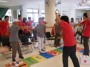 俊逸基金會週一99/7/26上午,帶領三十五位社區志工前往長青公寓與二十多位阿公阿媽同樂,大玩真人版大富翁。六和彩計畫-俊逸社區服務隊隊長洪碧涓表示,活動中有志工們的青春熱舞,還有志工帶領阿公阿媽進行小肌肉訓練、團康遊戲,其中在真人版大富翁遊戲中,由阿公阿媽下指導棋,志工擔任真人棋子,在府城的古蹟裡一戰高下。