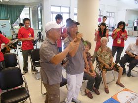 活動最後由志工帶領阿公阿媽一起合跳大眼睛及你是我的花朵等歌曲畫下完美句點。