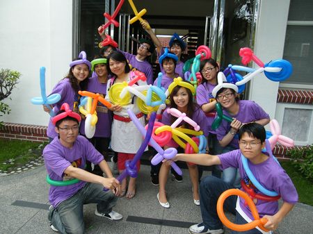 本次培訓營就特別邀請造型汽球達人王筱方教導志工折汽球的技巧。畢業於台南女子技術學院產品設計科的王筱芳,因為對氣球造型興趣濃厚,從拜師學藝、到日本購買相關書籍、上網研究,練就一身好手藝,並於九十三年元月獲得高雄市政府文化局街頭藝術表演認證。