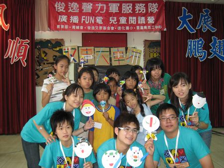 今年暑假興國管理學院文教事業管理學系三年級的劉承峰、江育慈、王薇婷、柯亮佑、郭如汝五位同學結伴,投入偏遠地區學童閱讀營隊的服務工作,參加俊逸文教基金會「閱讀志工∼廣播fun電.兒童閱讀營」服務工作,遠征南投縣魚池鄉邵族部落服務。劉承峰為此特別創作「柯南之西遊記推理劇場」故事劇,在營隊中帶領小朋友們透過故事啟發想像力。