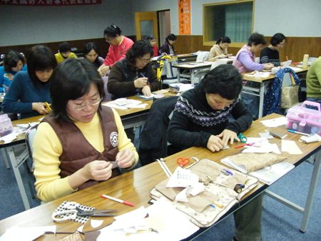 俊逸文教基金會自去年97/6/28開辦拼布班以來,許多學員都是自第一期就開始參與學習拼布,一年來大家在針線的世界裡找到樂趣,也拼出好感情,還曾經籌組「勝利姐妹拼布坊」參與公益義賣,奉獻愛心。去年十月份位於台南市勝利路八十五號台南市青年志工中心推出「1加2大於3公益市集」,志工們四處張羅來的物品,民眾可用銅板或尚未對獎的發票來交換,最後交換所得將捐給八八風災兒童救助之用。俊逸拼布坊的妹姐們也紛紛捐出拼布作品參與公益。