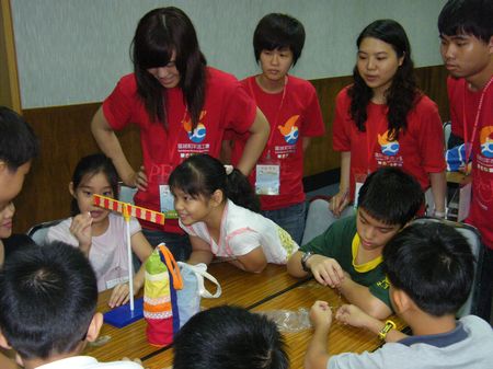 青輔會台南市青年志工中心專案經理洪碧涓表示,志工中心也有十四位科技志工擔任小隊輔,協助小朋友們藉著遊戲、探索的方式,能建立基礎科學概念,在遊戲中學習、在學習中遊戲。