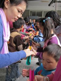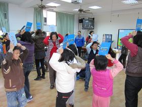 在課程中設計許多簡單的互動遊戲,利用撲克牌、繩索,讓親子共同完成任務,在執行過程中,讓媽媽、孩子一同面對抉擇,體驗對方的難處,一方面讓親代了解子代也有參與選擇的權利,也讓子代了解親代的想法也必須被尊重。(參與親子:16組,服務志工:3名) |