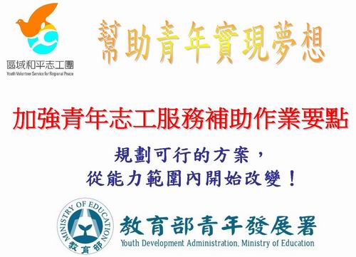 連結:教育部青年發展署加強青年志工服務補助作業要點 (開新視窗)