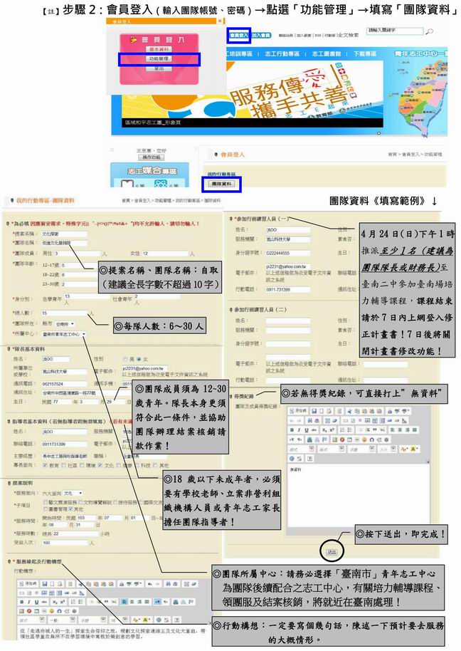 【專人免費到校說明】想了解105年教育部青年發展署「青年志工自組團隊」報名作業情形,請校方於4月10日以前填妥下列「說明會報名簡章」後回傳本會,以利中心安排專人到校說明)(為避免漏信,回傳表單後請務必來電確認!)