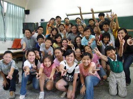 週三97/6/18在進學國小的這堂美語課,主辦單位邀請金車教育基金會史懷晢計劃的外藉老師,來自美國華盛頓州學生志工張新恩(teresa)及美國芝加哥學生志工賴愛心(naomi),二位老師透過遊戲教學,讓孩子在歡樂的情境中學美語。
