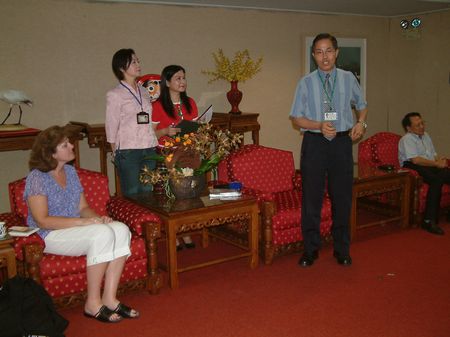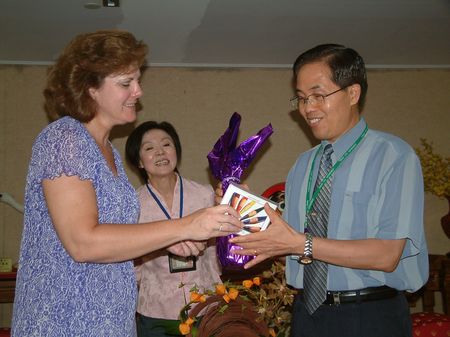 俊逸文教基金會今年暑假與金車教育基金會合作,97/8/5至97/8/8將於台南市進學國小舉辦「府城快樂美語營」,邀請美國華盛頓州長青學區國際志工擔任講師。這群國際志工們97/8/4今天抵達府城,在俊逸文教基金會執行長李明威、金車教育基金會總幹事曾清芸、美國華盛頓州長青學區督學Carol女士帶領下,先行拜會台南市政府,由教育處長王水文接見歡迎這群國際志工到台南服務。
