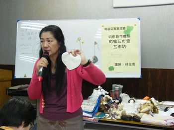南大附小幼稚園園長林玉雪,平時忙於教學工作,閒暇之餘還沈浸於拼布世界,鑽研拼布技巧,技巧好到開班授課。俊逸文教基金會週六98/2/7舉辦的一場「拼布創作體驗-甜蜜工作包工作坊」,就邀請林玉雪授課,不過這次林玉雪不是執教鞭,而是拿起針線教人縫甜蜜工作包。俊逸文教基金會拼布班訂週六2/21上午開課,八週課程1500元,歡迎有趣的民眾報名,電話06-2157524。