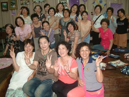 已經當阿媽的拼布班班長郭琇瑩表示,她是從完全不懂拼布開始,學習的過程裡常常想著不可以認輸,有時連睡覺都想著該怎麼縫。學了一年的拼布,今年暑假到美國看兒子裡,就帶了二十幾個自己親手縫製的手作包包當禮物,沒想到大受歡迎,還有一堆親戚跟她下訂單,回到台灣還跟拼布班同學一起製作了一批手作包包寄到美國,光運費就花了二千多元。