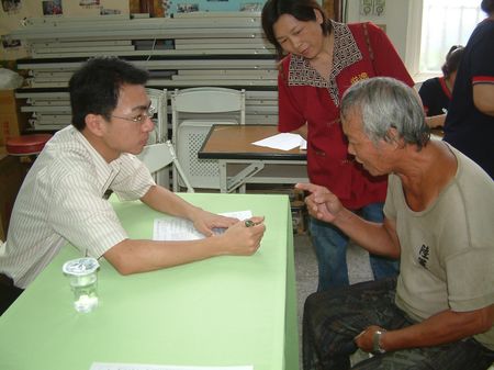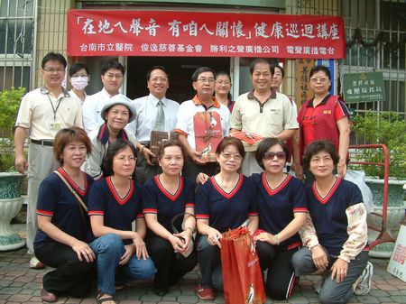台南市立醫院、俊逸慈善基金會、勝利之聲廣播公司、電聲廣播電台聯合創新健檢服務,本週六96/9/22推出到宅健檢,服務安平區行動不便的長輩,除了有專業醫療團隊到宅進行健康檢查,勝利之聲廣播公司總經理李明威、安平區長林國明、菩薩社區理事長林進南也帶著伴手禮,和服務志工關心獨居長輩的健康,並祝福阿公阿媽們中秋佳節快樂。
