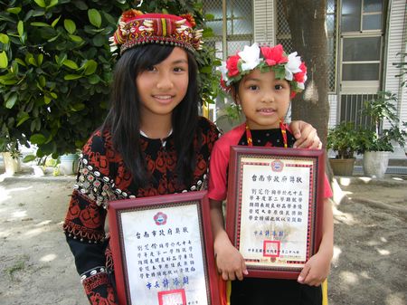 爸爸是排灣族,媽媽擁有卑南、排灣族血統的台南市崇學國小六年十二班劉芝伶和一年二班劉芝妍,姐妹兩人同以好成績獲得台南市原住民學童獎助學金的肯定。已是獎學金常客的劉芝伶,已經忘了這是第幾次得到獎學金,而第一次得到獎學金肯定的劉芝妍則是顯得相當興奮。