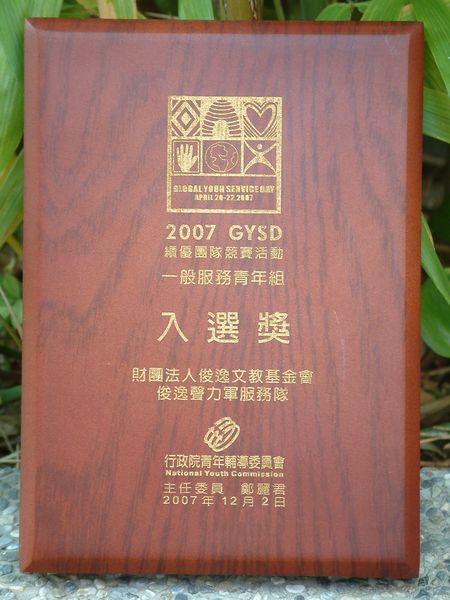 俊逸文教基金會「聲力軍志工服務隊」民國九十三年以「札哈木古道服務案」獲青輔會2004GYSD傑出團隊首獎;民國九十四年以「紅蜻蜓染布坊」獲獎;民國九十五年暑期前往花蓮縣秀林鄉銅蘭國小以及萬榮鄉的見晴國小,舉辦原住民兒童閱讀營隊,並以此榮獲2005GYSD傑出團隊,這個服務案也得到教育部「兒童閱讀史懷哲獎」第一名;今年以「青春無患子」服務企劃案獲獎證明實力不減。