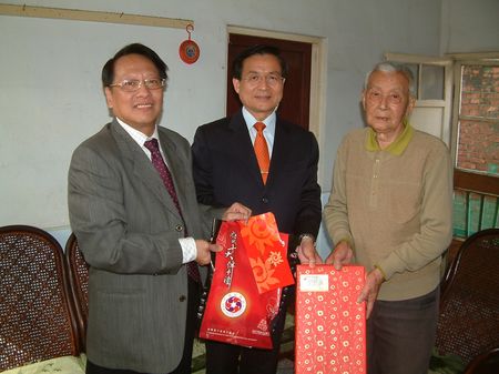 電台送暖本週日12/16搶先登場,由由台南市長許添財、勝利之聲廣播公司總經理李明威,親自拜訪八十八歲住在東區育樂街一百九十七巷的林連城老先生,並發放第一份救助金,李明威總經理也另外準備府城十大伴手禮送給林老先生。