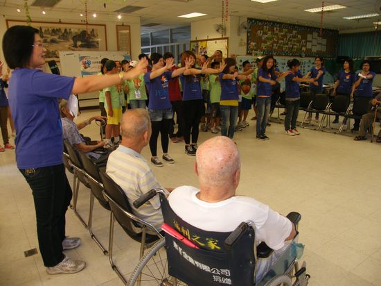勝利之聲廣播公司鄉親你好主持人芳芸,也特別到場義務主持,與阿公阿媽同樂。前往服務的志工除了青輔會台南市青年志工中心二十多位青年志工,金車教育基金會海洋營隊,來自台北、新竹、花東的國小學童,也擔任小小志工,服務阿公阿媽。志工們的熱情也讓阿公阿媽很是感動,頻頻說VERY GOOD。