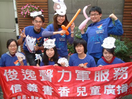 俊逸基金會每年都會利用寒暑假帶著大專志工下鄉服務,今年寒假,俊逸基金會聲力軍志願服務隊一行九人,帶著自製幼教道具,簡便行囊以及一身的熱情,週三100/1/20啟程前往台東阿美族部落,100/1/20至100/1/23於台東縣成功鎮都歷部落信義國小舉辦「信義書香兒童廣播閱讀營」,100/1/24至100/1/26於台東縣關山鎮電光部落電光國小舉辦「電光書香兒童廣播閱讀營」。