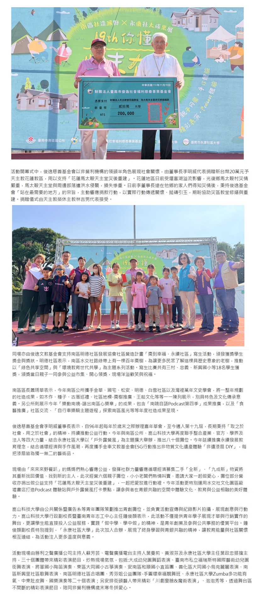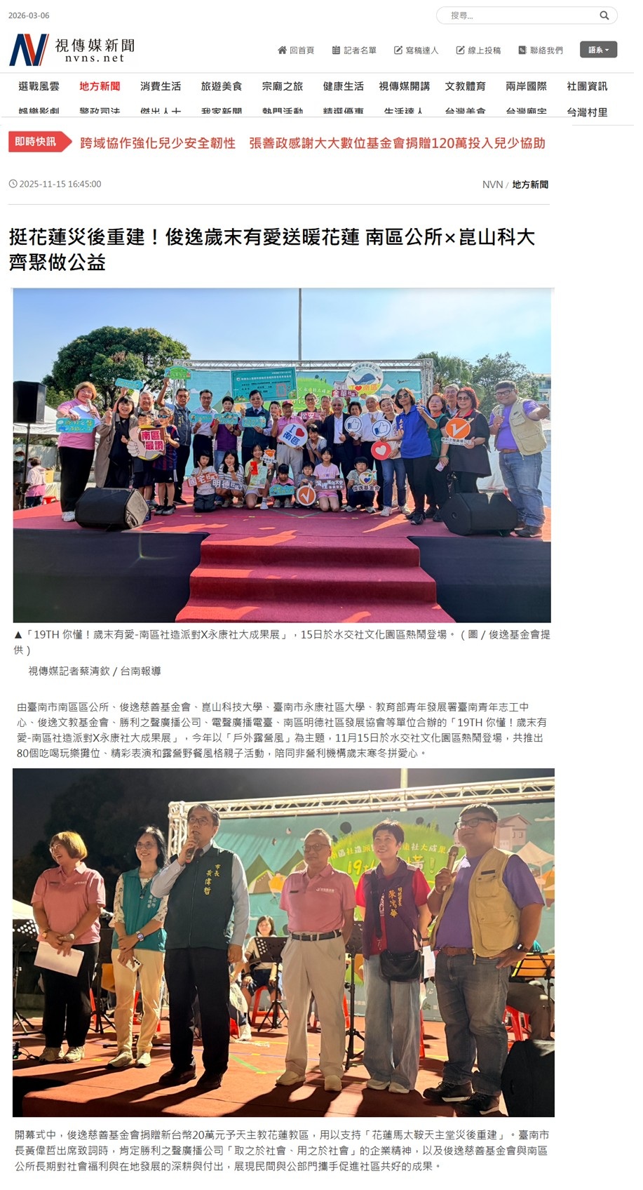 む視傳媒新聞め挺花蓮災後重建!俊逸歲末有愛送暖花蓮 南區公所×崑山科大齊聚做公益::俊逸文教基金會::