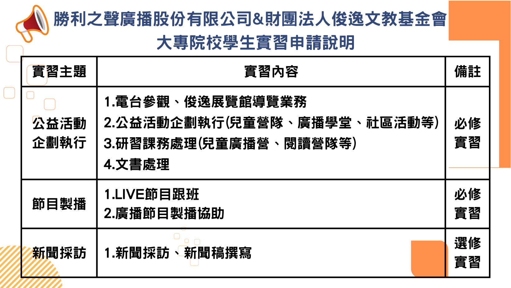 一、實習地點:勝利之聲廣播公司 (70052台南市中西區健康路一段22號)