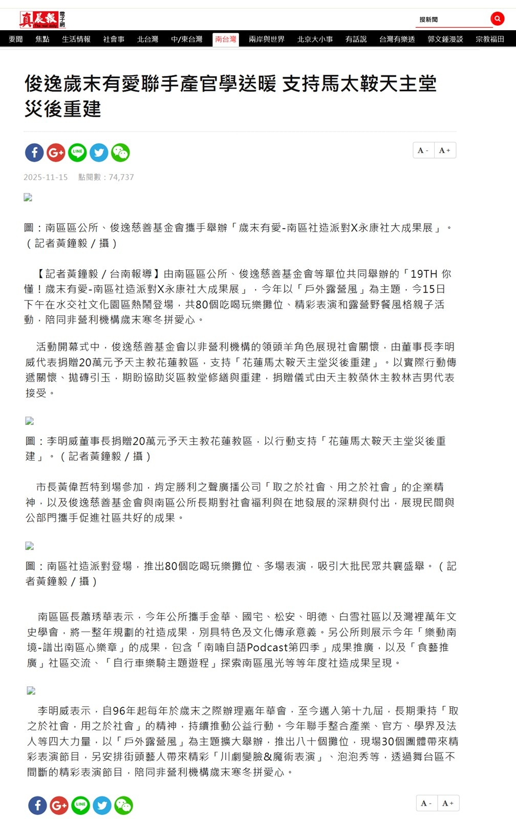 む真晨報め俊逸歲末有愛聯手產官學送暖 支持馬太鞍天主堂災後重建::俊逸文教基金會::