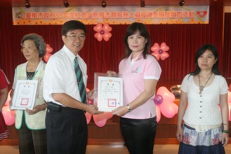 台南市政府社會處所屬志願服務隊志工授證表揚暨聯誼活動,週四99/7/1今天早上在社福大樓六樓大會議室隆重登場,現場有近一百多位志工被授證表揚,台南市副市長洪正中和俊逸文教基金會執行長李明威也前往祝賀,並呼籲大家多多加入志工行列。