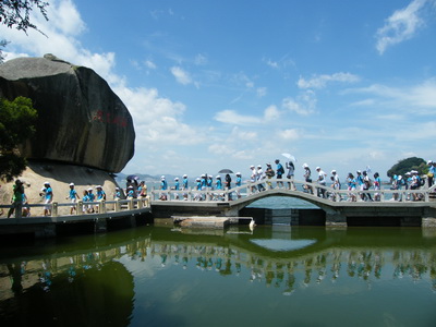 陽光海峽、兩岸快樂小天使行程已接近尾聲,十號全體團員搭乘遊輪至有海上花園之稱的鼓浪嶼,觀賞一些宏偉的私人別墅及鋼琴博物館,下午則走訪廈門大學,瞭解福建當地最高學府校史發展。