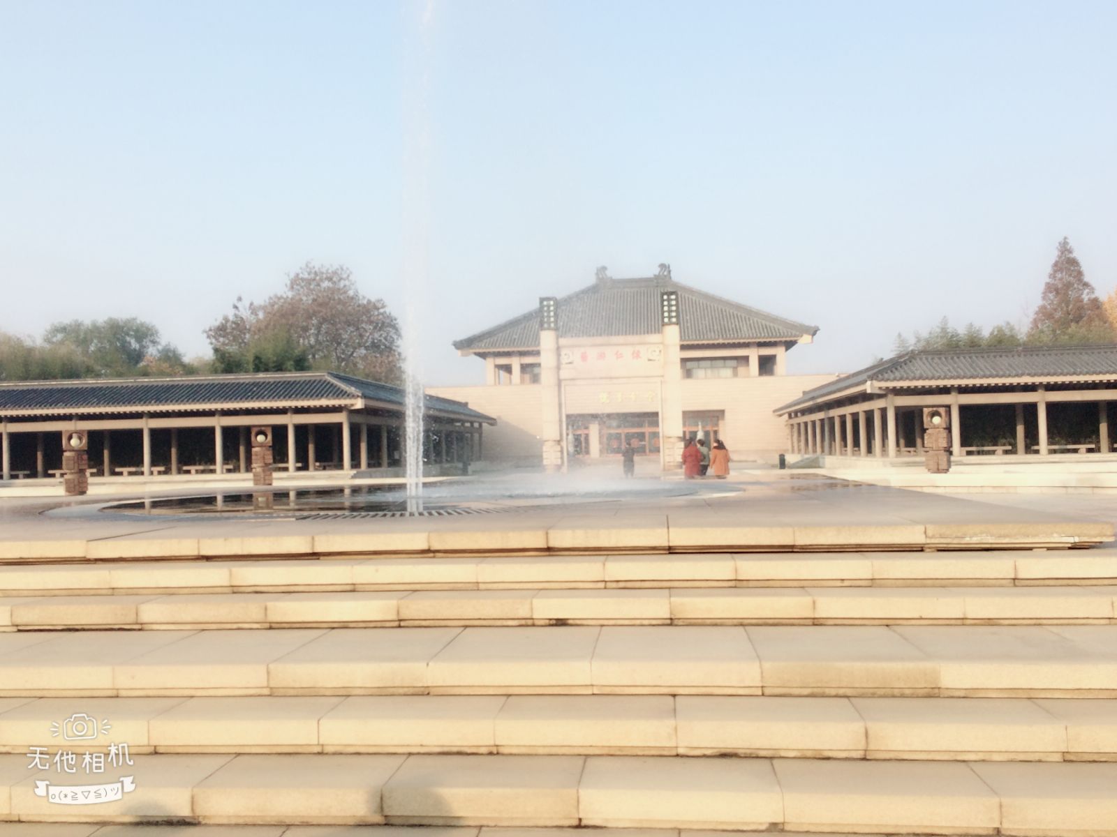 孔子研究院中間廣場特色:三面長廊維護,外方內圓故又稱「辟雍廣場」(辟雍是西周時期的圓形建築物,四面環水為雍)