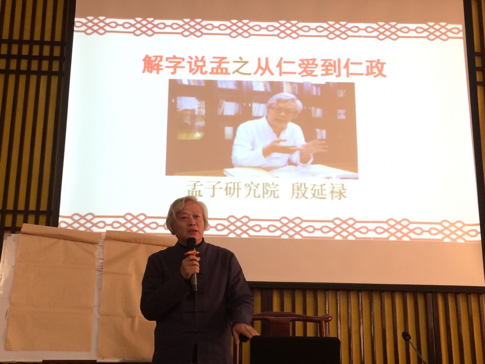 殷延祿老師說明《孟子文化》,更以書法文字闡述「仁」、「孝」、「修身」之《儒家思想》。