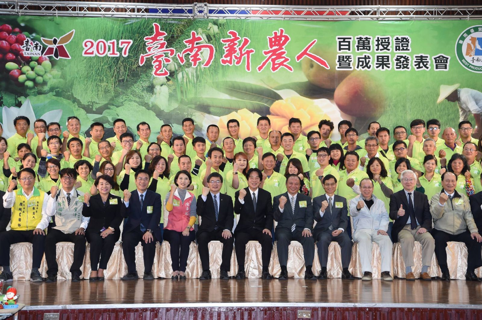 【記者蘇芳芸台南報導】行政院長賴清德22日出席「台南新農人百萬授證暨成果發表」活動時表示,授證有幾項意義,首先是顯示農業在台南的重要性;其次是扭轉一般人對農業發展有限的看法,年輕人以新方法,種植有附加價值的農產品,可以讓收入提高。此外,也希望讓務農成為時尚的行業。