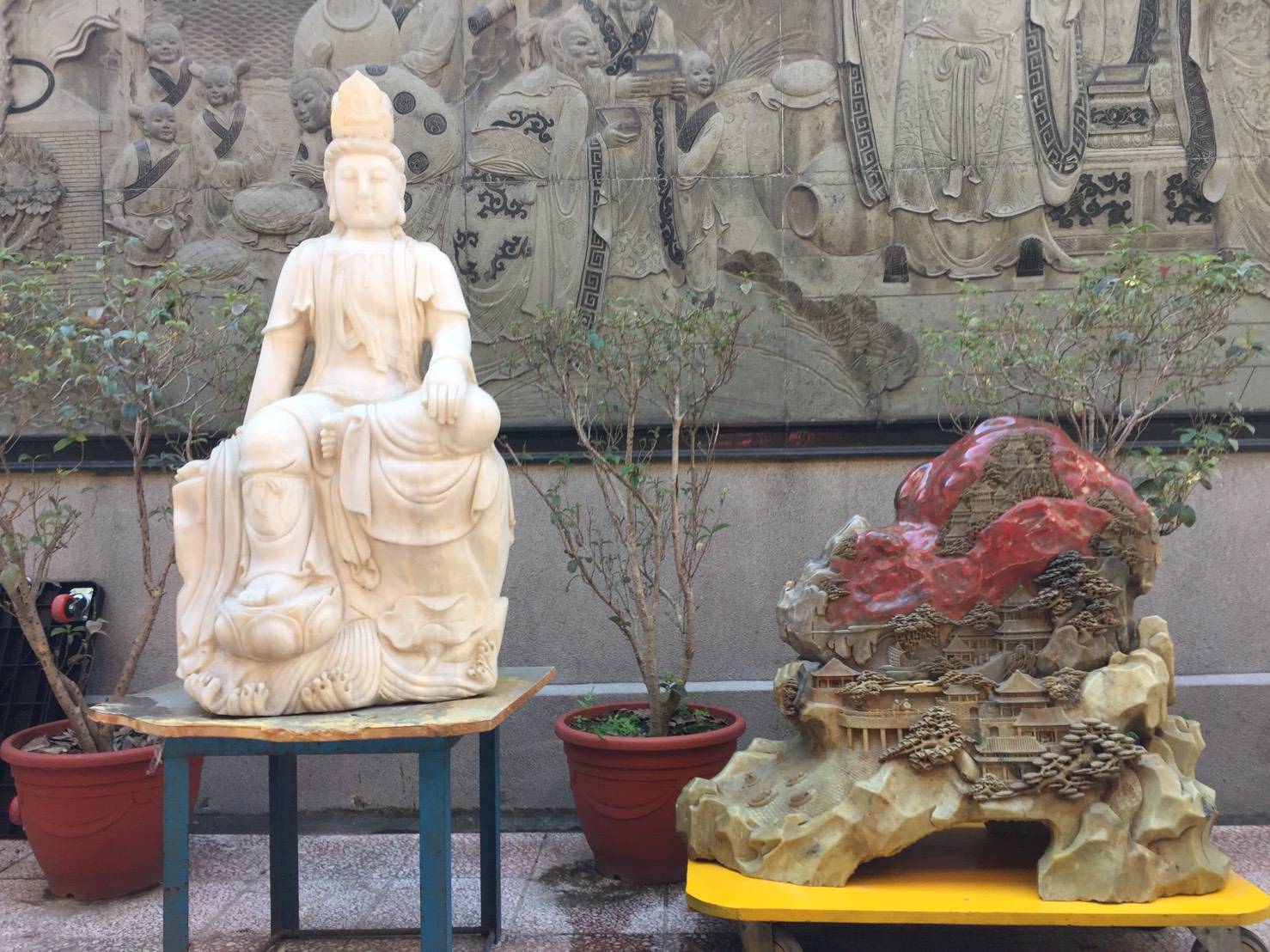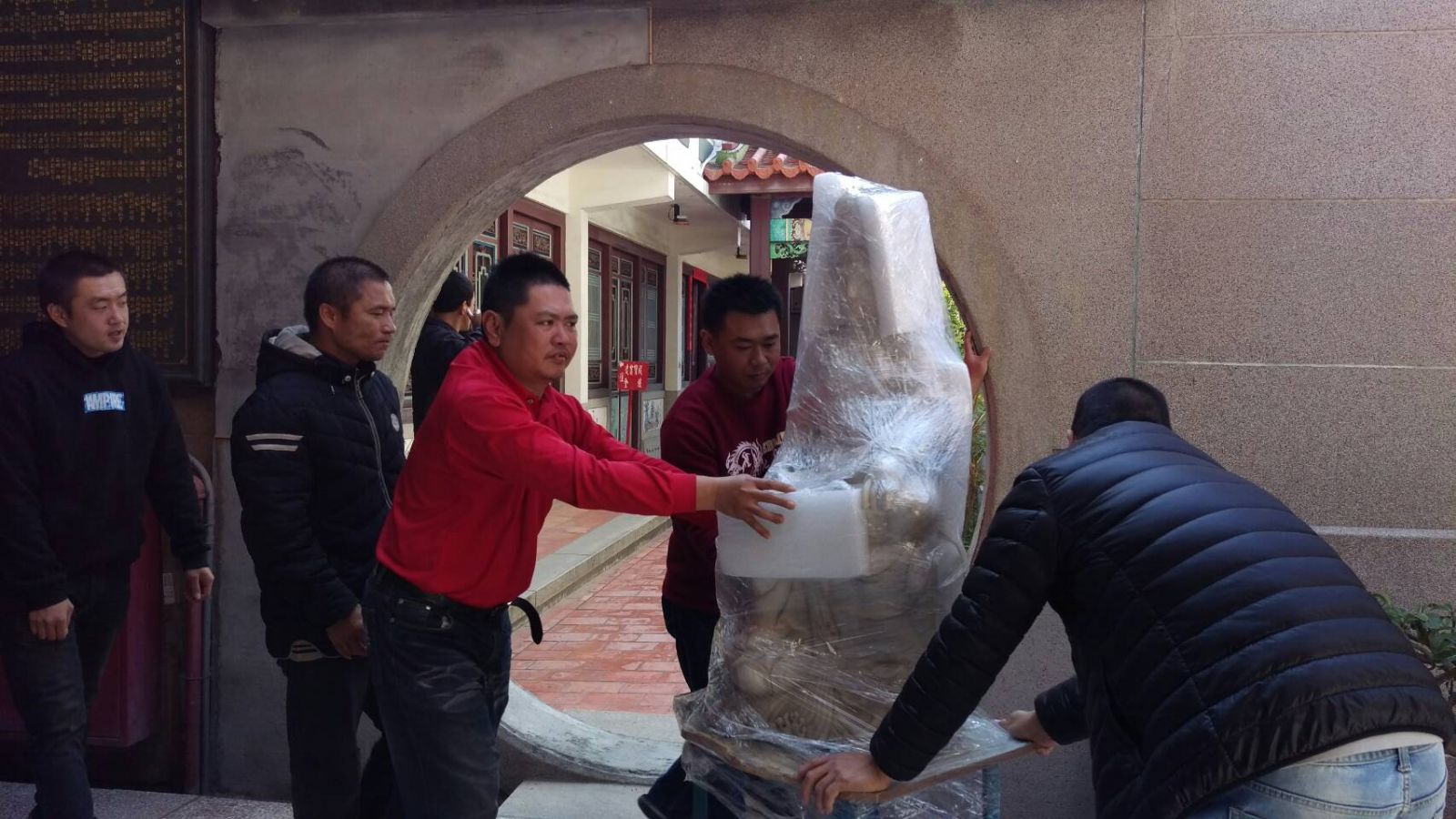 【記者蘇芳芸台南報導】29年次的老善化人陳平和先生,因感念善化慶安宮天上聖母及列位神尊庇佑,特將其珍貴收藏的一尊“百年玉石觀音”與一塊“中式山城造景的雞血名石”贈與該廟;今日,在善化慶安宮魏素珍總幹事,及善慶轎班義工們的協助下,終於將陳老先生贈與的珍品運回善化慶安宮安置。