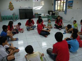 青輔會校園推廣大使,同時也是六和彩計畫-俊逸健康服務隊隊長郭如汝表示,健康服務隊在暑假規劃了一系列健康宣導服務,週三99/8/4來到關廟天宮育幼院,除了有團康活動、活力健康操等活動,同時健康志工們也規劃了小小護理站包紮教學、腸病毒登革熱預防宣導及洗手健康操等一系列課程,希望帶給小朋友正確的健康觀念。