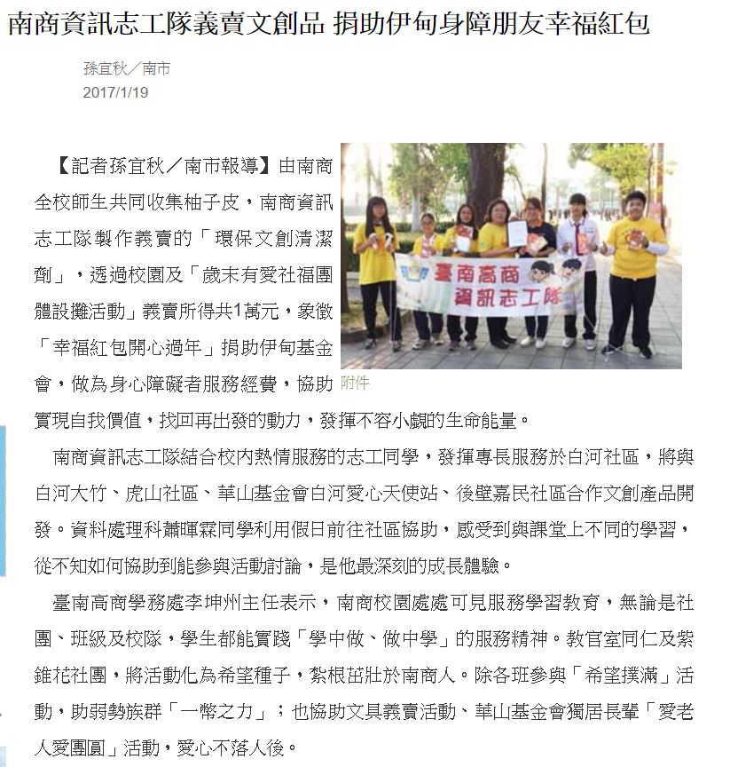 【台灣數位新聞全球網】南商資訊志工隊義賣文創品 捐助伊甸身障朋友幸福紅包