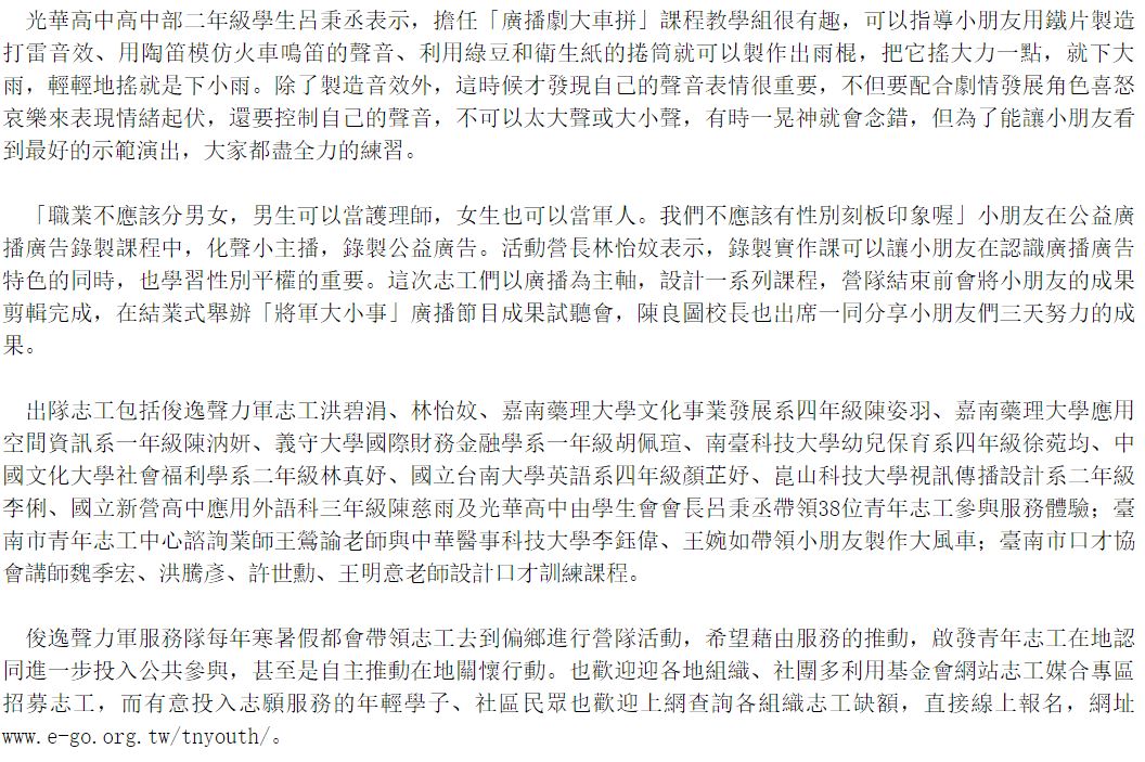 【中央網路報】俊逸兒童廣播營 小主播在將軍 將軍大小事 報給你聽