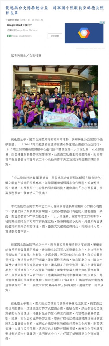 【新浪新聞】俊逸與台史博推動公益將軍國小照服員至璐德長照伴長輩