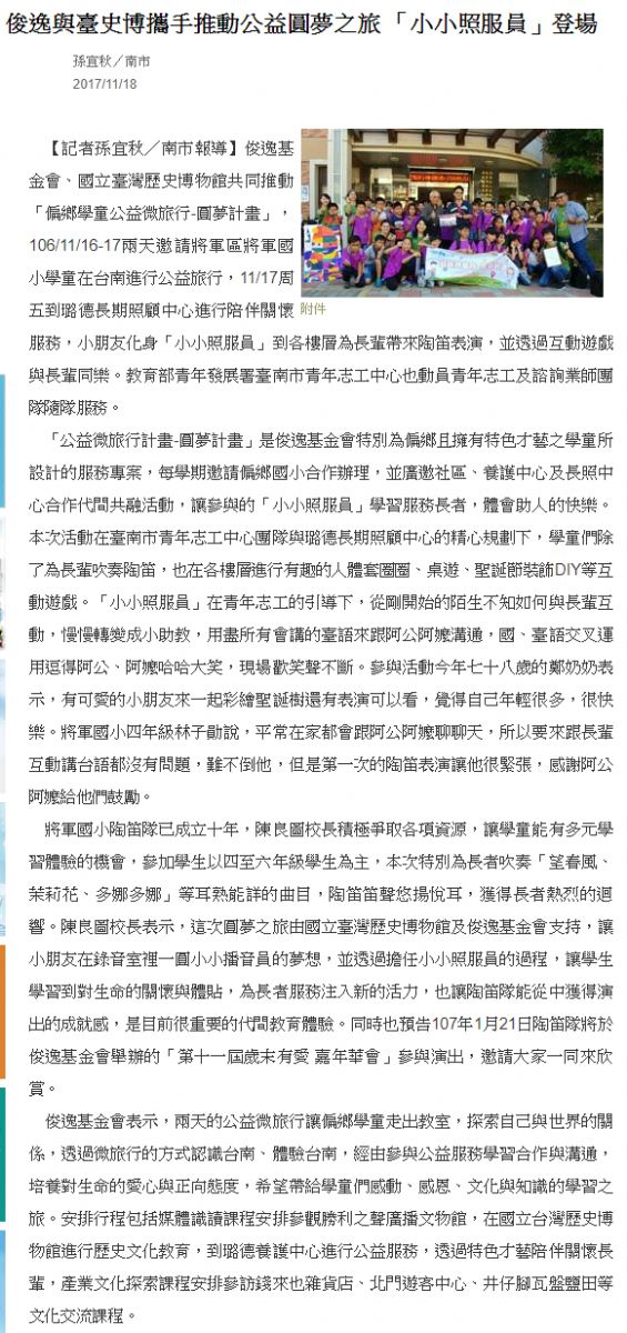 【財團法人俊逸文教基金會】【財團法人臺南市俊逸社會福利慈善事業基金會】【臺南市青年志工平台】台南市70052中西區健康路一段22號 TEL:06-2157524 FAX:06-2157529 e-mail:victory.radio@msa.hinet.net最佳瀏覽解析度 1024X768 (Internet Explorer6.0以上)Copyright 2007[財團法人俊逸文教基金會] [財團法人臺南市俊逸社會福利慈善事業基金會]All Rights Reserved.