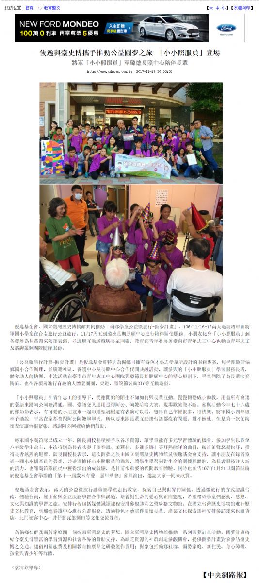 【中央網路報】俊逸與臺史博攜手推動公益圓夢之旅 「小小照服員」登場