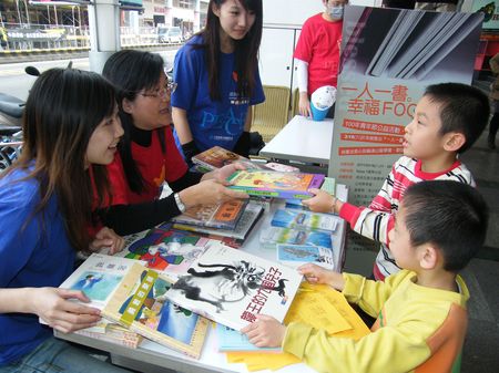 俊逸文教基金會、青輔會台南市青年志工中心與Focus時尚流行館合辦的「一人一書幸福focus」霧台送愛-募集兒童繪本活動,週六100/3/19於Focus時尚流行館舉行,現場還有國小學童帶著心愛的故事書前往共襄盛舉。