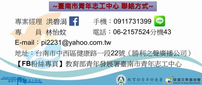 【財團法人俊逸文教基金會】【財團法人臺南市俊逸社會福利慈善事業基金會】【臺南市青年志工平台】