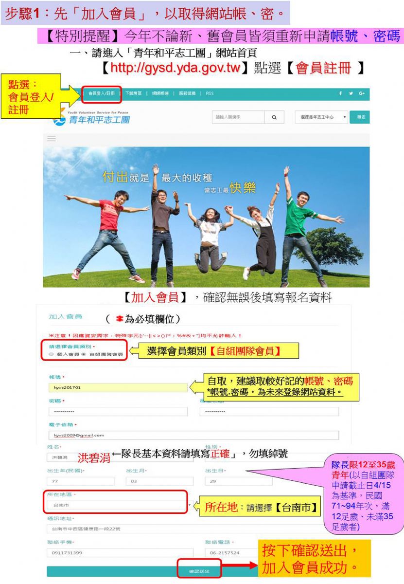 請連結至青年和平志工團網站   (https://gysd.yda.gov.tw)