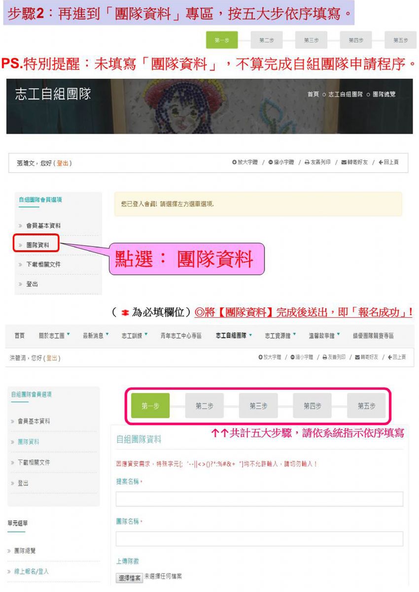 (注意:加入會員完成基本資料送出後,請至左側選單將【團隊資料】填寫完成後送出,即報名成功!)