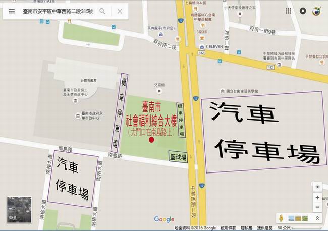 ◆開會地點:臺南市社會福利綜合大樓7樓大研習教室(臺南市中華西路二段315號)