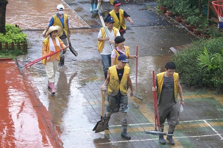 本會執行長李明威與東森文化基金會副執行長關杰玲、金車教育基金會總幹事曾清芸、台南佳楠愛心慈善會理事長周同利、土城國小校長黃俊傑等一行人,特地前往屏東縣三地門鄉,訪視三地門國小及三百多位來自達文、德文及大社等部落的受災戶,他們目前被安置於學校旁的體育館內情況。