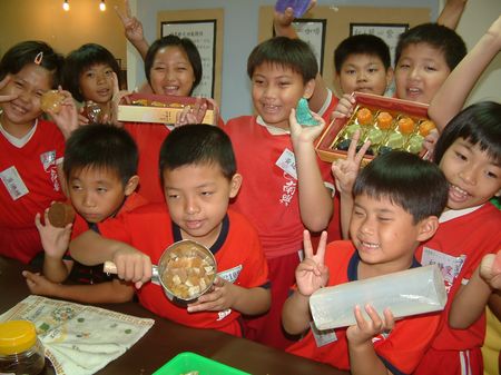 一直在推廣手工香皂的門昌肥皂工廠黃錦珠老師表示,這次為配合中秋佳節,因為特別安排小朋友製作另類的健康環保月餅皂,以含有鹽鹼成份的羊油皂基來製作手工皂,不染色的成本就很像小月餅,放在月餅盒裡幾可亂真。