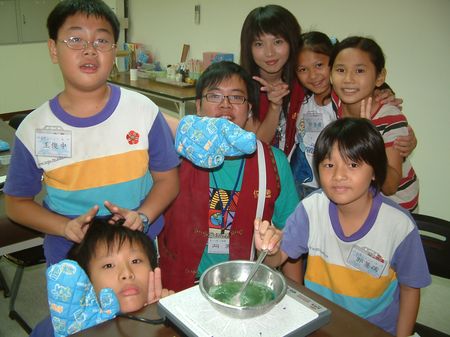 台南市土城國小五年級的蔡孟珊說,原來油脂再加上皂基加熱後,就可以製做成香皂,而要替手工香皂上色是需要技巧的,不可以把所有顏色都加進去,要不然會變成黑黑一片。