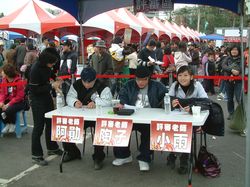 洪正中副市長也現場掏錢消費拼業績,在台南市腦性麻痺之友協會、台南縣牧德關懷協會、台南市智障者福利家長協進會附設愛心小甜甜烘焙屋等單位自費買了上千元的物品。